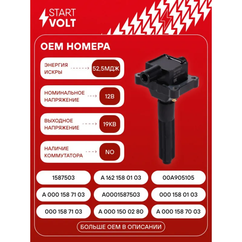 Катушка зажигания для автомобилей Mercedes-Benz C W202 (93-)/E W210 (95-) (с наконечником) SC 1518 StartVolt
