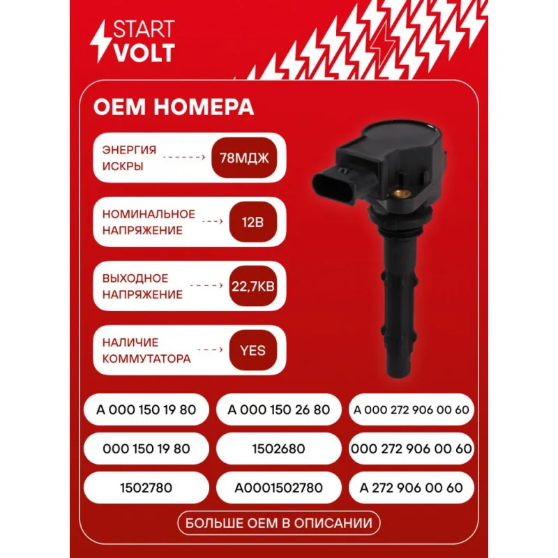 Катушка зажигания для автомобилей Mercedes-Benz M W164 (05-) 3.5i/GL X164 (06-) 4.7i/5.5i SC 1515 StartVolt