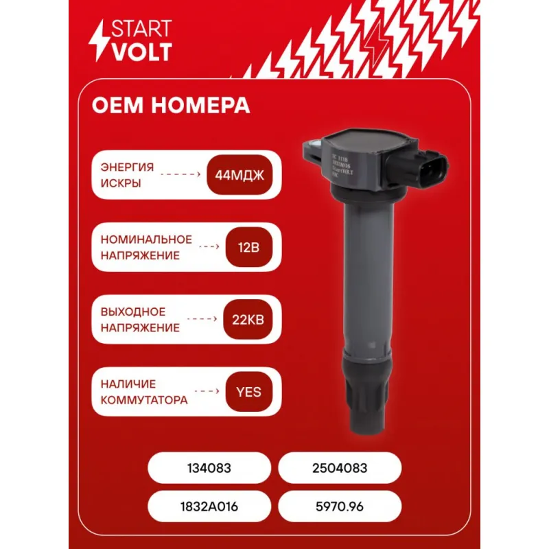 Катушка зажигания для автомобилей Mitsubishi Lancer X (07-)/Pajero Sport (08-) 1.8i/2.0i/2.4i/3.0i Характеристики: Артикул: SC 1118 OEM номера: 1832A016, 5970.96, 134083, 2504083 Количество контактов: 3 Выходное напряжение, кВ: 22 Номинальное напряжение, В: 12 Наличие коммутатора: Есть Энергия искры, мДж: 44 Подходит для авто: Mitsubishi Outlander II (06-), Pajero Sport K90 (98-), Lancer X (07-), ASX (10-) Peugeot 4007 (07-) Citroen C-Crosser (07-) Для проверки применяемости отправьте VIN автомобиля через вкладку "Есть вопросы о товаре?" Комплектация: Паспорт изделия/гарантийный талон - 1 шт Катушка зажигания - 1 шт Гарантия: от 1 года.