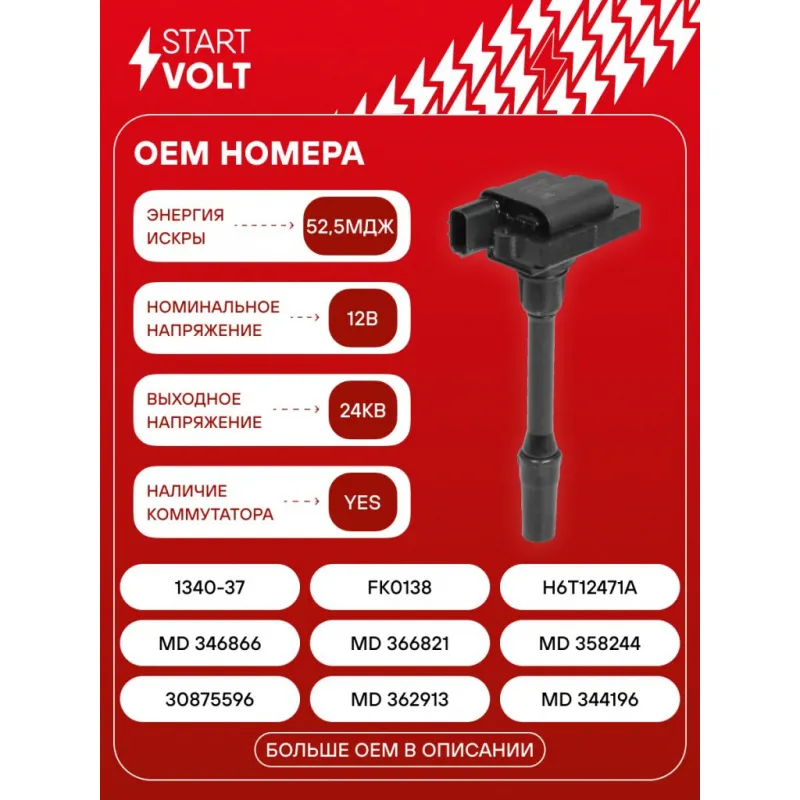 Катушка зажигания для автомобилей Mitsubishi Pajero III (00-) 3.5i Характеристики: Артикул: SC 1042 OEM номера: 30875596, MD 362913, MD 344196, MD 346866, MD 366821, MD 358244, 1340-37, FK0138, H6T12471A, 2504037 Количество контактов: 3 Выходное напряжение, кВ: 24 Номинальное напряжение, В: 12 Наличие коммутатора: Есть Энергия искры, мДж: 52,5 Сопутствующий товар: Наконечники катушек зажигания: STC 1042 Подходит для авто: Mitsubishi Carisma (95-), Pajero III (00-) Volvo S40 (96-) Для проверки применяемости отправьте VIN автомобиля через вкладку "Есть вопросы о товаре?" Комплектация: Катушка зажигания - 1 шт Паспорт изделия/гарантийный талон - 1 шт Гарантия: от 1 года.