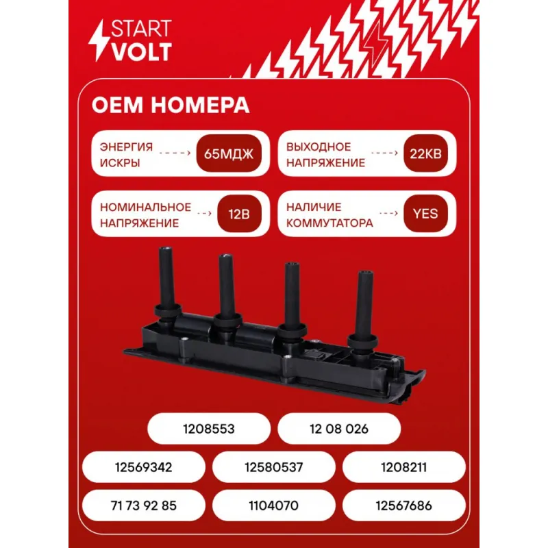 Катушка зажигания для автомобилей Opel Astra G (00-)/Vectra B (95-)/Vectra C (02-) 2.2i SC 2130 StartVolt