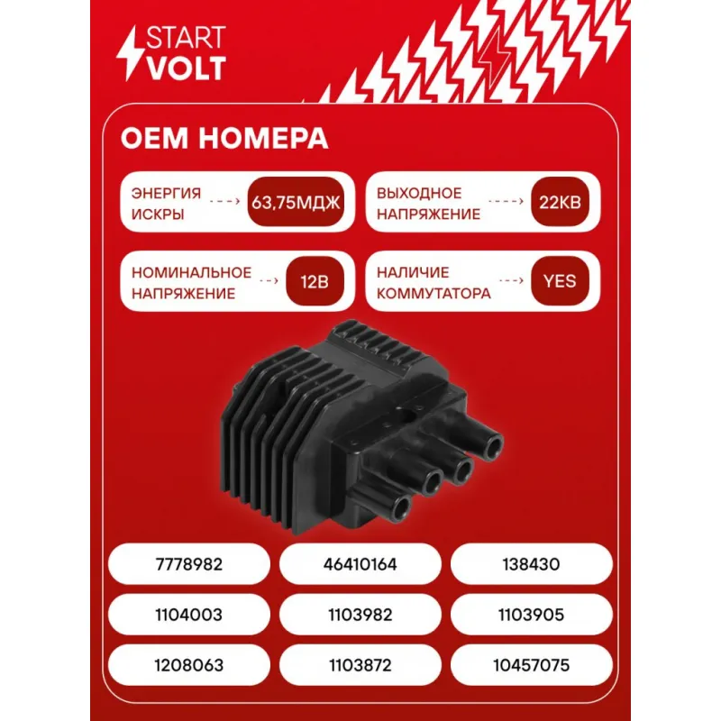 Катушка зажигания для автомобилей Opel Astra G (98-) 1.6i/Astra F (91-) 1.4i/1.6i (тип Delco) Характеристики: Артикул: SC 0521 OEM номера: 1208063, 1103872, 10457075, 1104003, 1103982, 1103905, 7778982, 46410164, 138430 Количество контактов: 4 Выходное напряжение, кВ: 22 Номинальное напряжение, В: 12 Наличие коммутатора: Есть Вторичное сопротивление, кОм: 12,58 Вторичная индуктивность, Н: 25,7 Энергия искры, мДж: 63,75 Подходит для авто: Opel Astra G (98-) Для проверки применяемости отправьте VIN автомобиля через вкладку "Есть вопросы о товаре?" Комплектация: Катушка зажигания - 1 шт Паспорт изделия/гарантийный талон - 1 шт Гарантия: от 1 года.