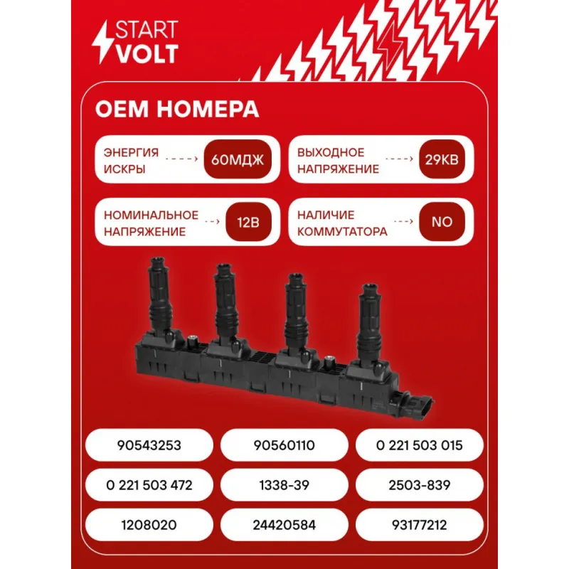 Катушка зажигания для автомобилей Opel Astra H (04-)/Corsa D (06-) 1.2i/1.4i SC 2014 StartVolt