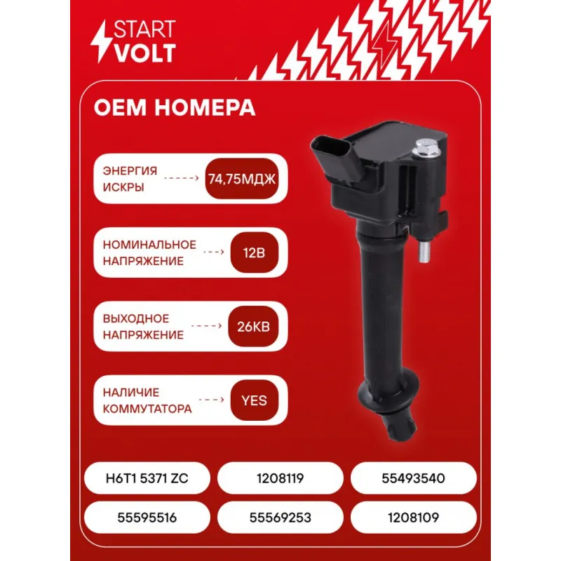 Катушка зажигания для автомобилей Opel Insignia A (13-) 1.6T Характеристики: Артикул: SC 2125 OEM номера: 55595516, 55569253, 1 208 109, H6T1 5371 ZC, 1208119, 55493540 Количество контактов: 4 Выходное напряжение, кВ: 26 Номинальное напряжение, В: 12 Наличие коммутатора: Есть Энергия искры, мДж: 74,75 Подходит для авто: Opel ... Читать полностью →