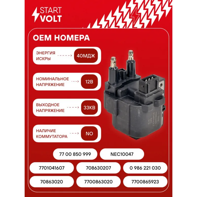 Катушка зажигания для автомобилей Renault Megane (95-) 1.6i/Volvo S40 (95-) 1.8i SC 0908 StartVolt