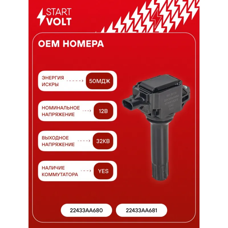 Катушка зажигания для автомобилей Subaru Forester SJ (13-) 2.0i/2.5i/XV (12-) 2.0i Характеристики: Артикул: SC 2215 OEM номера: 22433AA680, 22433AA681 Количество контактов: 3 Выходное напряжение, кВ: 32 Номинальное напряжение, В: 12 Наличие коммутатора: Есть Энергия искры, мДж: 50 Подходит для авто: Subaru Forester SJ (12-), XV (11-) Для проверки применяемости отправьте VIN автомобиля через вкладку "Есть вопросы о товаре?" Комплектация: Катушка зажигания - 1 шт Паспорт изделия/гарантийный талон - 1 шт Гарантия: от 1 года.