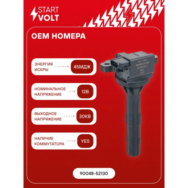 Катушка зажигания для автомобилей Toyota Cami (00-)/Daihatsu Terios (97-) 1.3i (K3VE) SC 1706 StartVolt