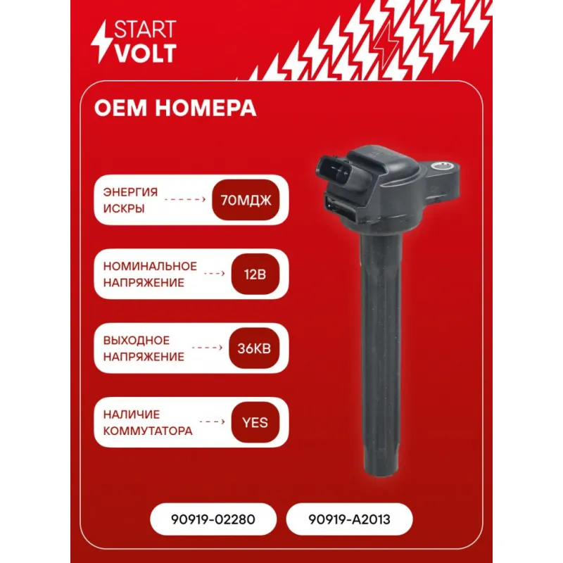 Катушка зажигания для автомобилей Toyota Camry V70 (17-)/Highlander (19-)/Lexus RX (15-) 3.5i Характеристики: Артикул: SC 1935 OEM номера: 90919-02280, 90919-A2013 Номинальное напряжение, В: 12 Количество контактов: 4 Выходное напряжение, кВ: 36 Наличие коммутатора: Есть Энергия искры, мДж: 70 Подходит для авто: Toyota Camry ... Читать полностью →