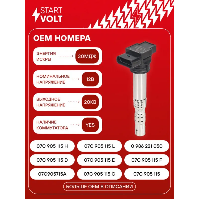Катушка зажигания для автомобилей VAG A8 (03-)/Touareg (02-)/Continental (01-) 6.0i SC 1803 StartVolt