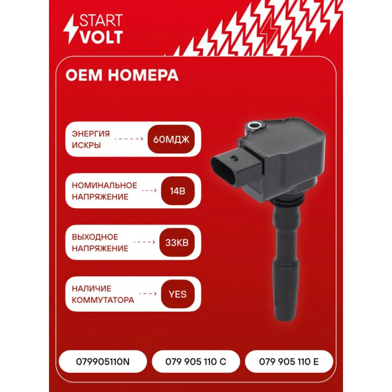 Катушка зажигания для автомобилей VAG A8 (09-)/Continental (09-) 4.0T Характеристики: Артикул: SC 1806 OEM номера: 079905110N, 079 905 110 C, 079 905 110 E Номинальное напряжение, В: 14 Количество контактов: 4 Выходное напряжение, кВ: 33 Наличие коммутатора: да Первичное сопротивление, Ом: - Вторичное сопротивление, кОм: - Первичная индуктивность, мН: - Вторичная индуктивность, Н: - Энергия искры, мДж: 60 Сопутствующий товар: Наконечники катушек зажигания: - Комплектация: Катушка зажигания - 1 шт Паспорт изделия/гарантийный талон - 1 шт Гарантия: от 1 года.