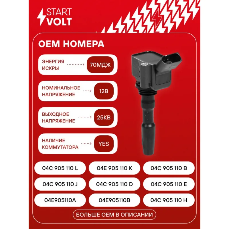 Катушка зажигания для автомобилей VAG Golf VII (12-)/A3 (13-)/Octavia (13-) 1.4T/1.6i SC 18174 StartVolt