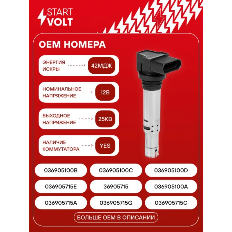 Катушка зажигания для автомобилей VAG Polo Sedan (11-)/Golf V (03-) 1.4i/1.4T Характеристики: Артикул: SC 1814 OEM номера: 036905715A, 036905715G, 036905715C, 036905715E, 036905715, 036905100A, 036905100B, 036905100C, 036905100D, 036 905 715 F, 036 905 715 H, 0 986 221 023, 1338-07, 2503-807 Количество контактов: 4 Подходящий разъем AIRLINE:: AECC339, AECC020 Выходное напряжение, кВ: 25 Номинальное напряжение, В: 12 Наличие коммутатора: Есть Энергия искры, мДж: 42 Подходит для авто: Volkswagen Polo V (09-), Polo IV (01-), Golf V (03-) Skoda Octavia A5 (04-) Для проверки применяемости отправьте VIN автомобиля через вкладку "Есть вопросы о товаре?" Комплектация: Катушка зажигания - 1 шт Паспорт изделия/гарантийный талон - 1 шт Гарантия: от 1 года.