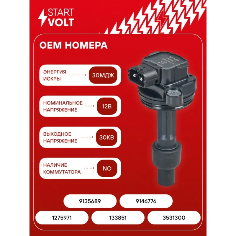 Катушка зажигания для автомобилей Volvo S40 (04-)/S60 (00-)/S80 (98-) 2.4i Характеристики: Артикул: SC 1008 OEM номера: 1275971, 133851, 3531300, 9135689, 9146776 Номинальное напряжение, В: 12 Количество контактов: 2 Выходное напряжение, кВ: 30 Наличие коммутатора: Отсутствует Первичное сопротивление, Ом: 0,5 Энергия искры, мДж: 30 Подходит для авто: Volvo S40 (04-), S80 (98-) Для проверки применяемости отправьте VIN автомобиля через вкладку "Есть вопросы о товаре?" Комплектация: Паспорт изделия/гарантийный талон - 1 шт Катушка зажигания - 1 шт Гарантия: от 1 года.