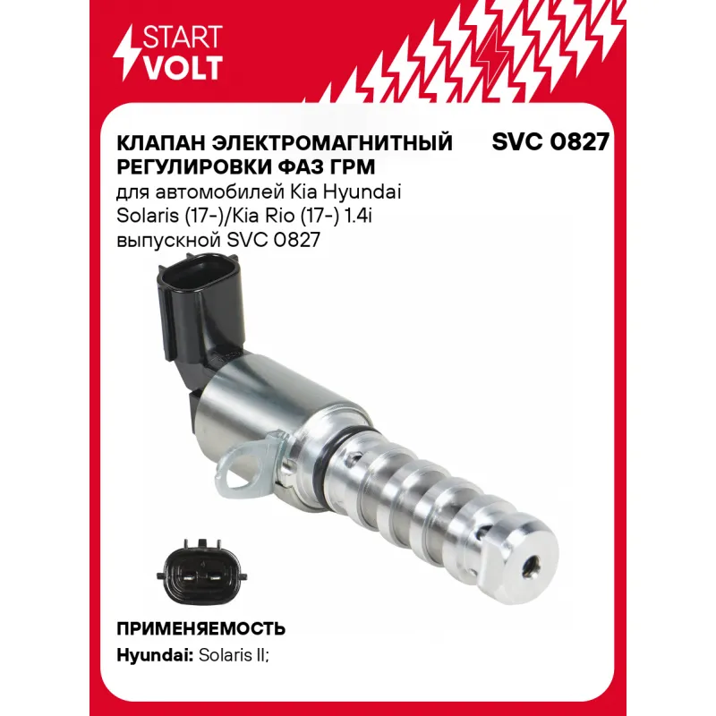 Клапан электромагнитный регулировки фаз ГРМ для автомобилей Kia Hyundai Solaris (17-)/Kia Rio (17-) 1.4i выпускной Характеристики: Артикул: SVC 0827 OEM номера: 24375-03020 Номинальное напряжение, В: 12 Сопротивление изоляции обмотки клапана, Ом: 7,6 Количество на автомобиль: 1 Подходит для авто: Hyundai Solaris II (17-) Для проверки применяемости отправьте VIN автомобиля через вкладку "Есть вопросы о товаре?" Комплектация: Паспорт изделия/гарантийный талон Клапан электромагнитный регулировки фаз ГРМ - 1 шт Гарантия: от 1 года.