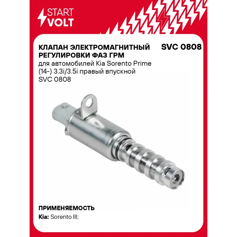 Клапан электромагнитный регулировки фаз ГРМ для автомобилей Kia Sorento Prime (14-) 3.3i/3.5i правый впускной Характеристики: Артикул: SVC 0808 OEM номера: 24355-3CAB2 Номинальное напряжение, В: 12 Сопротивление изоляции обмотки клапана, Ом: 10,2 Количество на автомобиль: 1 Подходит для авто: Kia Sorento III (14-) Для прове... Читать полностью →