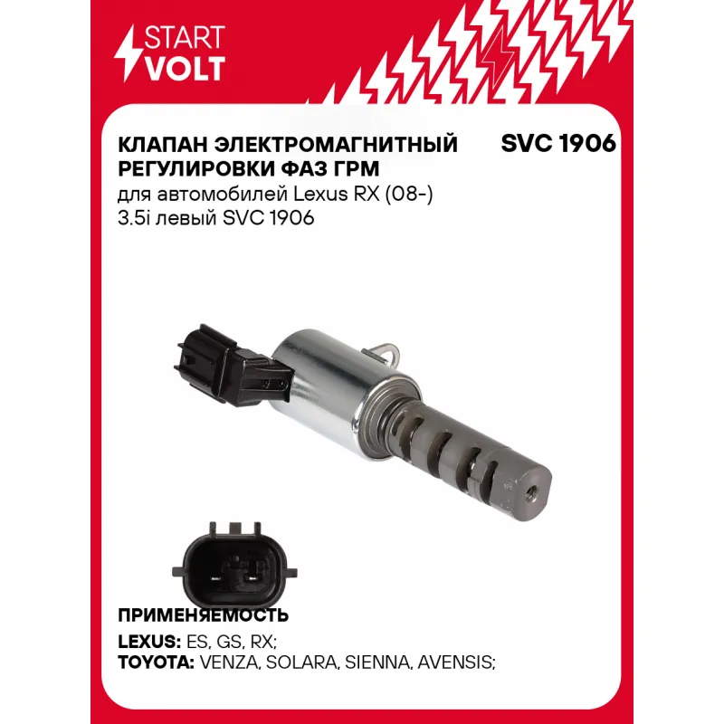 Клапан электромагнитный регулировки фаз ГРМ для автомобилей Lexus RX (08-) 3.5i левый Характеристики: Артикул: SVC 1906 OEM номера: 15330-0P020, 15330-31020 Количество на автомобиль: 1 Номинальное напряжение, В: 12 Сопротивление изоляции обмотки клапана, Ом: 7 Комплектация: Паспорт изделия/гарантийный талон Клапан электромагн... Читать полностью →