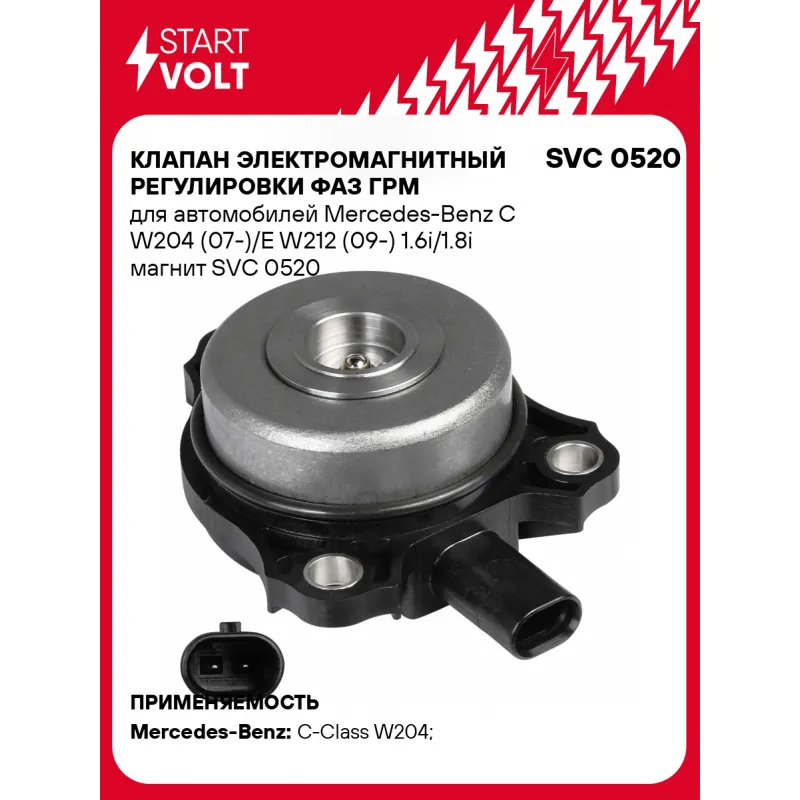 Клапан электромагнитный регулировки фаз ГРМ для автомобилей Mercedes-Benz C W204 (07-)/E W212 (09-) 1.6i/1.8i магнит Характеристики: Артикул: SVC 0520 OEM номера: 271 156 00 90, A 271 156 00 90, 271 050 01 77, A 271 050 01 77 Номинальное напряжение, В: 12 Сопротивление изоляции обмотки клапана, Ом: 7,6 Количество на автомобиль: 1 Подходит для авто: Mercedes-Benz C-Class W204 (07-), E-Class W212 (09-) Для проверки применяемости отправьте VIN автомобиля через вкладку "Есть вопросы о товаре?" Комплектация: Паспорт изделия/гарантийный талон Клапан электромагнитный регулировки фаз ГРМ - 1 шт Гарантия: от 1 года.