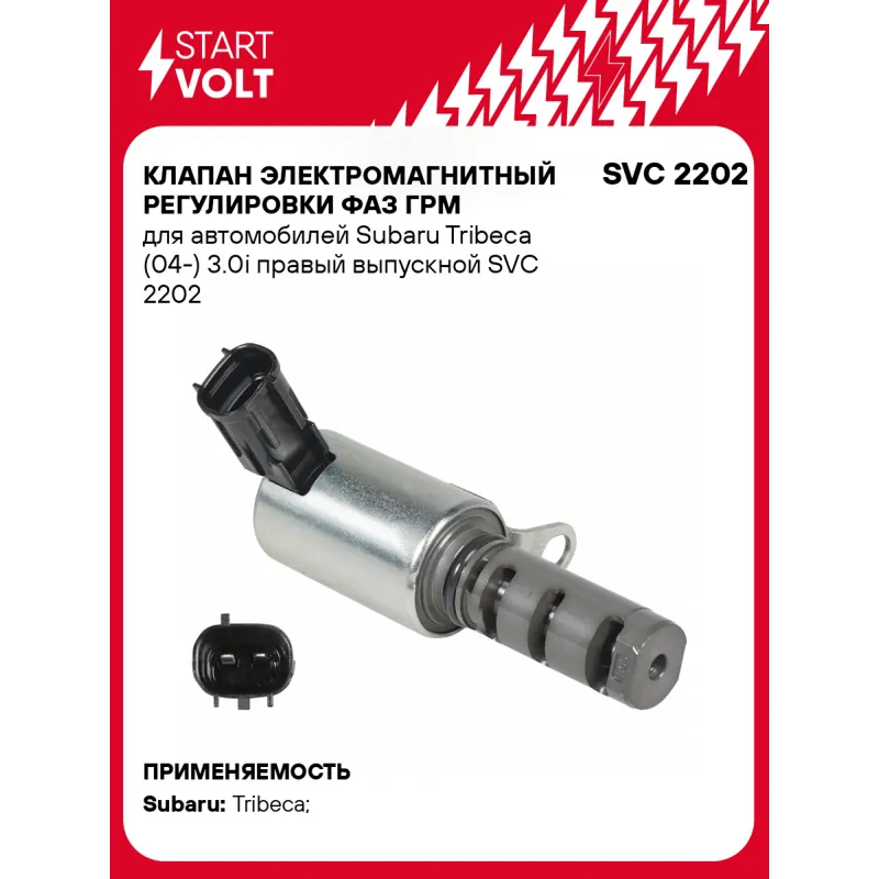 Клапан электромагнитный регулировки фаз ГРМ для автомобилей Subaru Tribeca (04-) 3.0i правый выпускной Характеристики: Артикул: SVC 2202 OEM номера: 10921AA070 Номинальное напряжение, В: 12 Сопротивление изоляции обмотки клапана, Ом: 7,2 Количество на автомобиль: 1 Подходит для авто: Subaru Tribeca (04-) Для проверки применяемости отправьте VIN автомобиля через вкладку "Есть вопросы о товаре?" Комплектация: Паспорт изделия/гарантийный талон Клапан электромагнитный регулировки фаз ГРМ - 1 шт Гарантия: от 1 года.