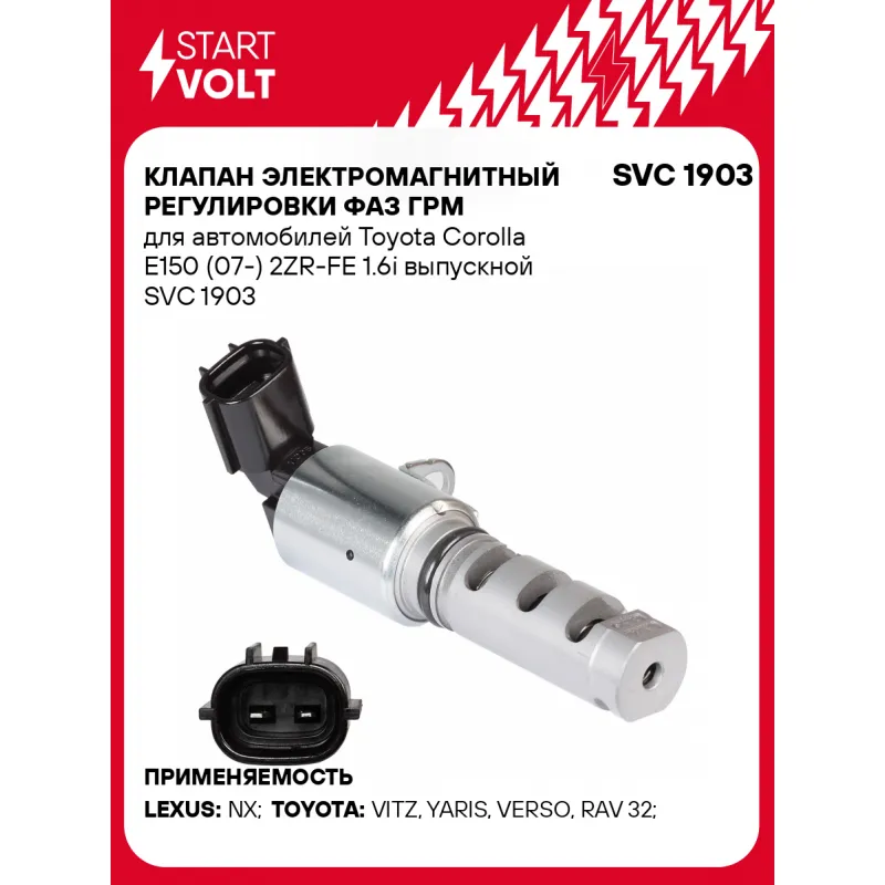 Клапан электромагнитный регулировки фаз ГРМ для автомобилей Toyota Corolla E150 (07-) 2ZR-FE 1.6i выпускной SVC 1903 StartVolt