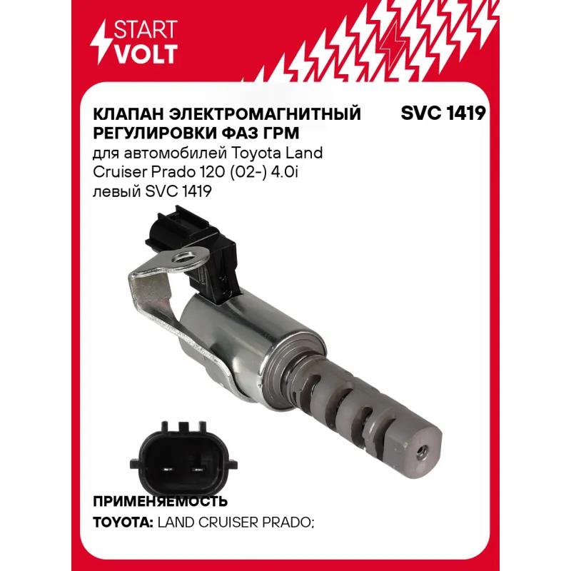 Клапан электромагнитный регулировки фаз ГРМ для автомобилей Toyota Land Cruiser Prado 120 (02-) 4.0i левый Характеристики: Артикул: SVC 1419 OEM номера: 15340-0P010, 15340-31010 Количество на автомобиль: 1 Номинальное напряжение, В: 12 Сопротивление изоляции обмотки клапана, Ом: 7 Комплектация: Паспорт изделия/гарантийный тал... Читать полностью →