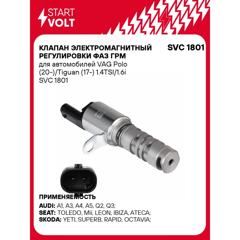 Клапан электромагнитный регулировки фаз ГРМ для автомобилей VAG Polo (20-)/Tiguan (17-) 1.4TSI/1.6i Характеристики: Артикул: SVC 1801 OEM номера: 04E 906 455 D, 04E 906 455 N, 04E 906 455 AC, 04E 906 455, 4E 906 455, 4E 906 455 D Количество на автомобиль: 1 Номинальное напряжение, В: 12 Сопротивление изоляции обмотки клапана, Ом: 7 Комплектация: Паспорт изделия/гарантийный талон Клапан электромагнитный регулировки фаз ГРМ - 1 шт Гарантия: от 1 года.