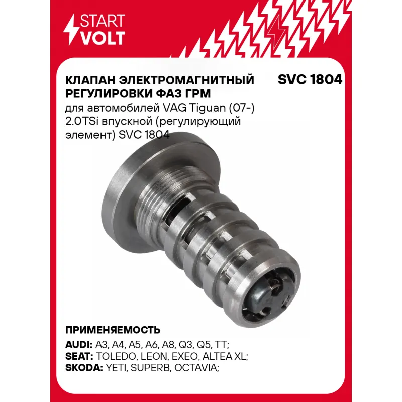 Клапан электромагнитный регулировки фаз ГРМ для автомобилей VAG Tiguan (07-) 2.0TSi впускной (регулирующий элемент) Характеристики: Артикул: SVC 1804 OEM номера: 06H 109 257 C, 6H 109 257 C Количество на автомобиль: 1 Номинальное напряжение, В: 12 Сопротивление изоляции обмотки клапана, Ом: 7 Комплектация: Паспорт изделия/гарантийный талон Клапан электромагнитный регулировки фаз ГРМ - 1 шт Гарантия: от 1 года.
