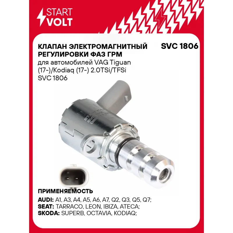 Клапан электромагнитный регулировки фаз ГРМ для автомобилей VAG Tiguan (17-)/Kodiaq (17-) 2.0TSi/TFSi Характеристики: Артикул: SVC 1806 OEM номера: 06K 115 243 A, 06K 115 243 B, 06K 115 243 L, 6K 115 243 A, 6K 115 243 B, 6K 115 243 L Количество на автомобиль: 1 Номинальное напряжение, В: 12 Сопротивление изоляции обмотки клапана, Ом: 7 Комплектация: Паспорт изделия/гарантийный талон Клапан электромагнитный регулировки фаз ГРМ - 1 шт Гарантия: от 1 года.