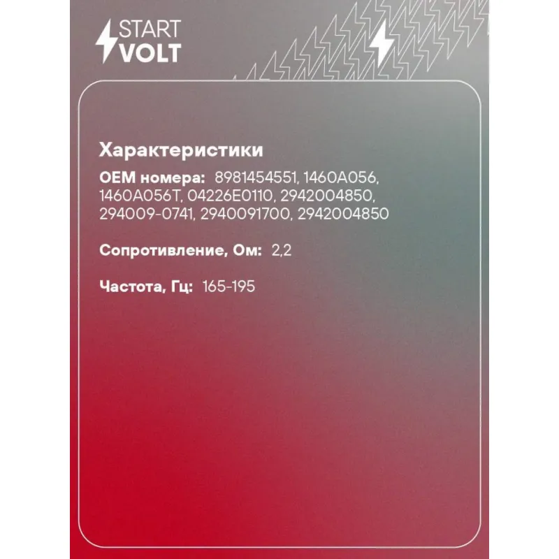 | STARTVOLT SPR1102 1 шт. | 2 дня | 248.80 р. | |