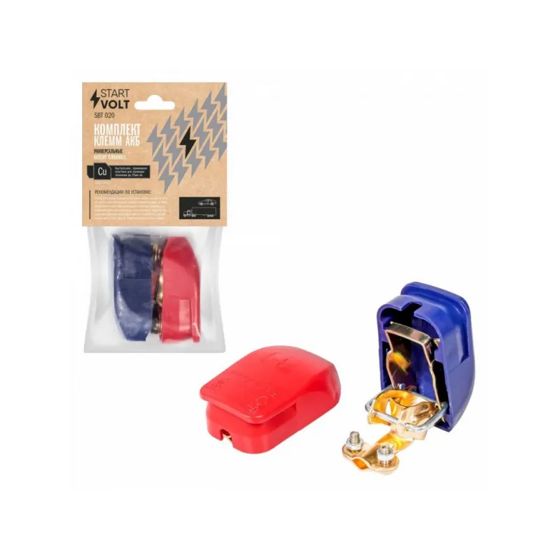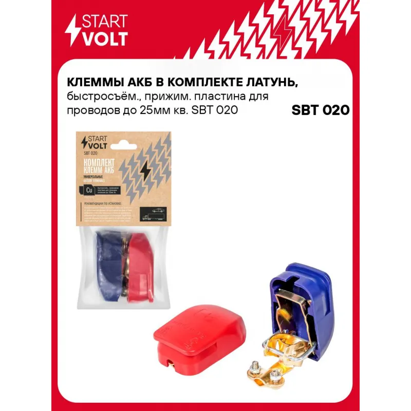 Клеммы АКБ в комплекте латунь, быстросъём., прижим. пластина для проводов до 25мм кв. SBT 020 StartVolt