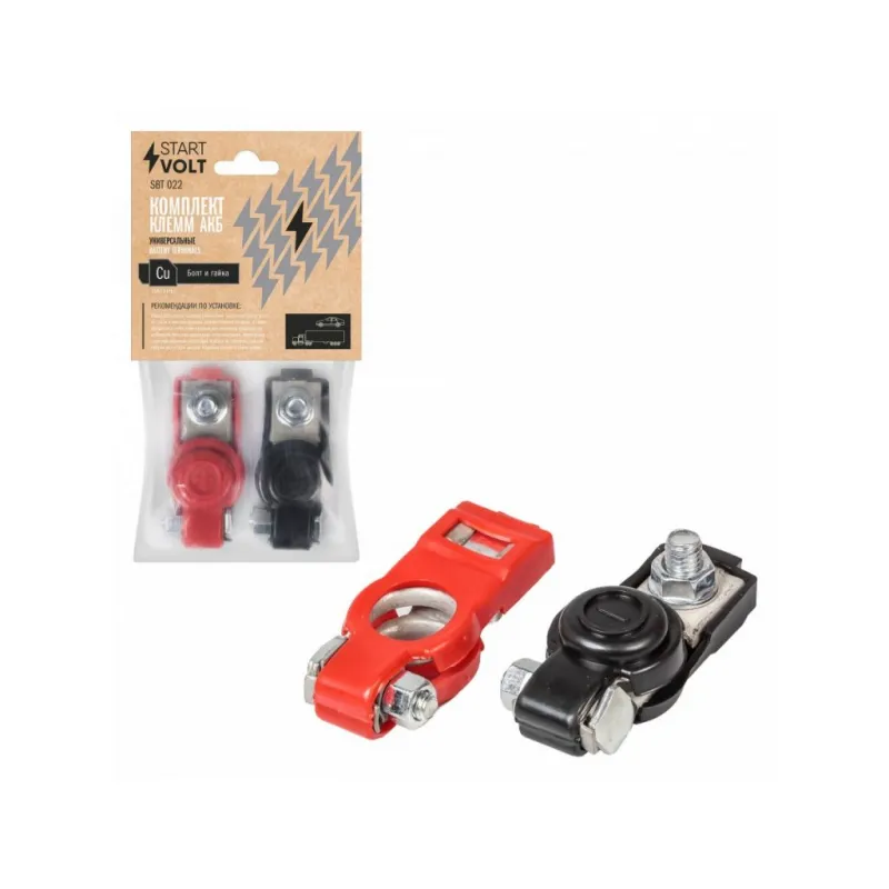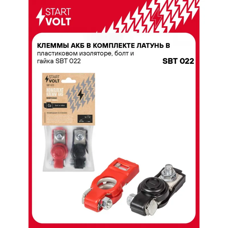 Клеммы АКБ в комплекте латунь в пластиковом изоляторе, болт и гайка SBT 022 StartVolt