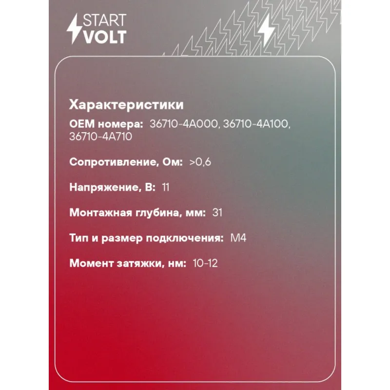 Комплект свечей накаливания (4шт) для автомобилей KIA Sorento (06-) 2.5D Характеристики: Артикул: GLSP 504 OEM номера: 36710-4A000, 36710-4A100, 36710-4A710 Сопротивление, Ом: >0,6 Резьба: M10x1,25 Напряжение, В: 11 Монтажная глубина, мм: 31 Покатность конуса, град: 120 Тип и размер подключения: M4 Момент затяжки, нм: 10-12 Ширина ключа: 12 Общая длина, мм: 148,9 Количество на автомобиль: 1 Комплектация: Паспорт изделия/гарантийный талон - 1 шт Гайка - 4 шт Свеча накаливания - 4 шт Гарантия: от 1 года.