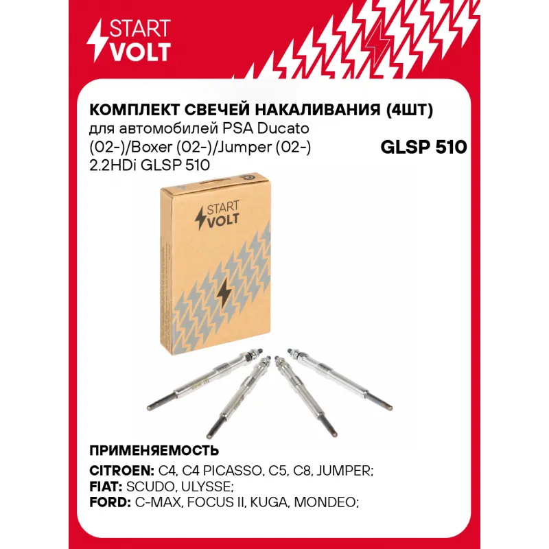 Комплект свечей накаливания (4шт) для автомобилей PSA Ducato (02-)/Boxer (02-)/Jumper (02-) 2.2HDi Характеристики: Артикул: GLSP 510 OEM номера: 1473356, 18550 67G11, 18550 67G11 000, 3072 5069, 32017061, 32017062, 5960 F4 Сопротивление, Ом: >0,6 Резьба: M10X1 Напряжение, В: 11 Монтажная глубина, мм: 27 Покатность конуса, град: 63 Тип и размер подключения: M4 Момент затяжки, нм: 10-12 Ширина ключа: 10 Общая длина, мм: 118,5 Количество на автомобиль: 1 Комплектация: Паспорт изделия/гарантийный талон - 1 шт Гайка - 4 шт Свеча накаливания - 4 шт Гарантия: от 1 года.