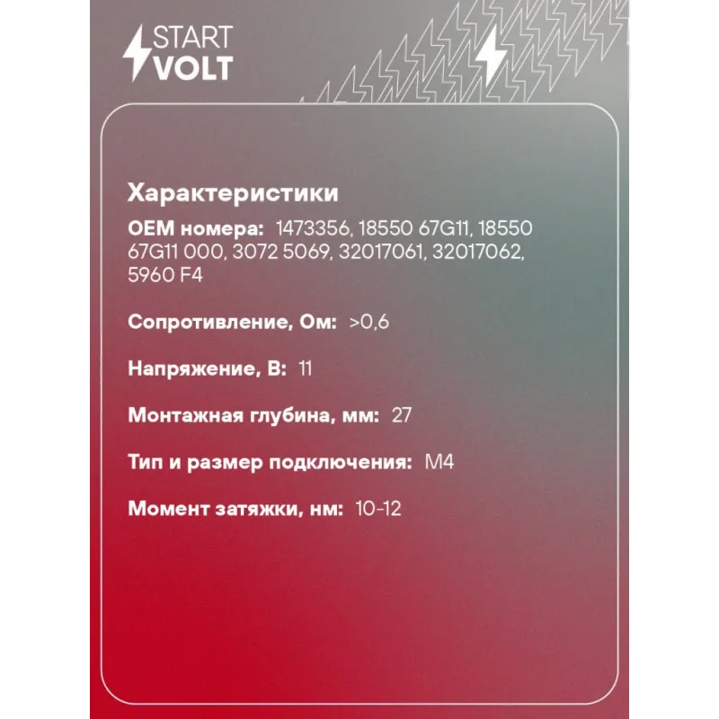 | Количество на автомобиль | 1 |