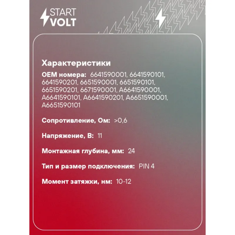 Комплект свечей накаливания (4шт) для автомобилей SsangYong Kyron (05-) 2.0Xdi Характеристики: Артикул: GLSP 506 OEM номера: 6641590001, 6641590101, 6641590201, 6651590001, 6651590101, 6651590201, 6671590001, A6641590001, A6641590101, A6641590201, A6651590001, A6651590101 Сопротивление, Ом: >0,6 Резьба: M10X1 Напряжение, В: 11 Монтажная глубина, мм: 24 Покатность конуса, град: 63 Тип и размер подключения: PIN 4 Момент затяжки, нм: 10-12 Ширина ключа: 10 Общая длина, мм: 150,4 Количество на автомобиль: 1 Комплектация: Паспорт изделия/гарантийный талон - 1 шт Гайка - 4 шт Свеча накаливания - 4 шт Гарантия: от 1 года.