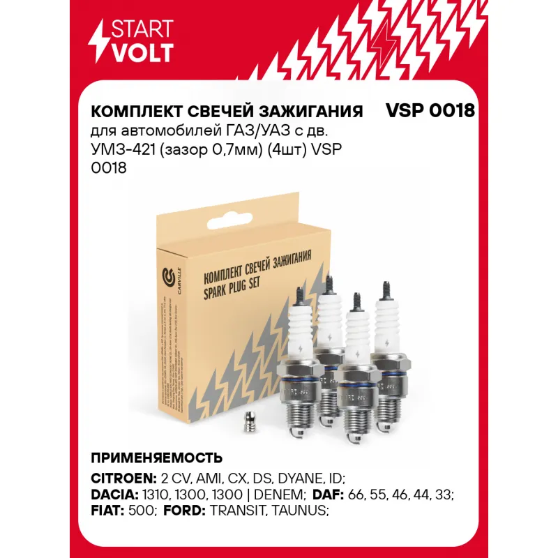Комплект свечей зажигания для автомобилей ГАЗ/УАЗ с дв. УМЗ-421 (зазор 0,7мм) (4шт) Характеристики: Артикул: VSP 0018 OEM номера: 75 54 44 5, 5962.80, 5962.90, 5962.A3, 7567.61, 95496692, ZCT000011, 77 00 587 168, 77 01 366 057, 7701366267, 77 01 366 515, 99934-09685-100, 999-3409-6911-00, M 45 PW, M 45 PX, 98076-56719, 98076-56719-02, 98076-56721, 13901-67716, 13902-67711, 90098-20515, 09482-00059, 09482-00074, 09482-00084, 09482-00188, 09482-00259, 09482-00531, 94700-00108, 94701-00108, 94703-00108, 947-03002-23, 3975, BP6H Резистор: Нет Момент затяжки, нм: 25-30 Количество на автомобиль: 1 Ширина ключа,мм: 20,6 Размер резьбы: M14x1,25 Длина резьбы,мм: 12,7 Выступление центрального электрода,мм: 3 Боковой электрод: 1 Электроды: Никель Зазор, мм: 0,7 Маркировка: NEP6-V7 Комплектация: Свеча зажигания - 4 шт Паспорт изделия/гарантийный талон Гарантия: от 1 года.