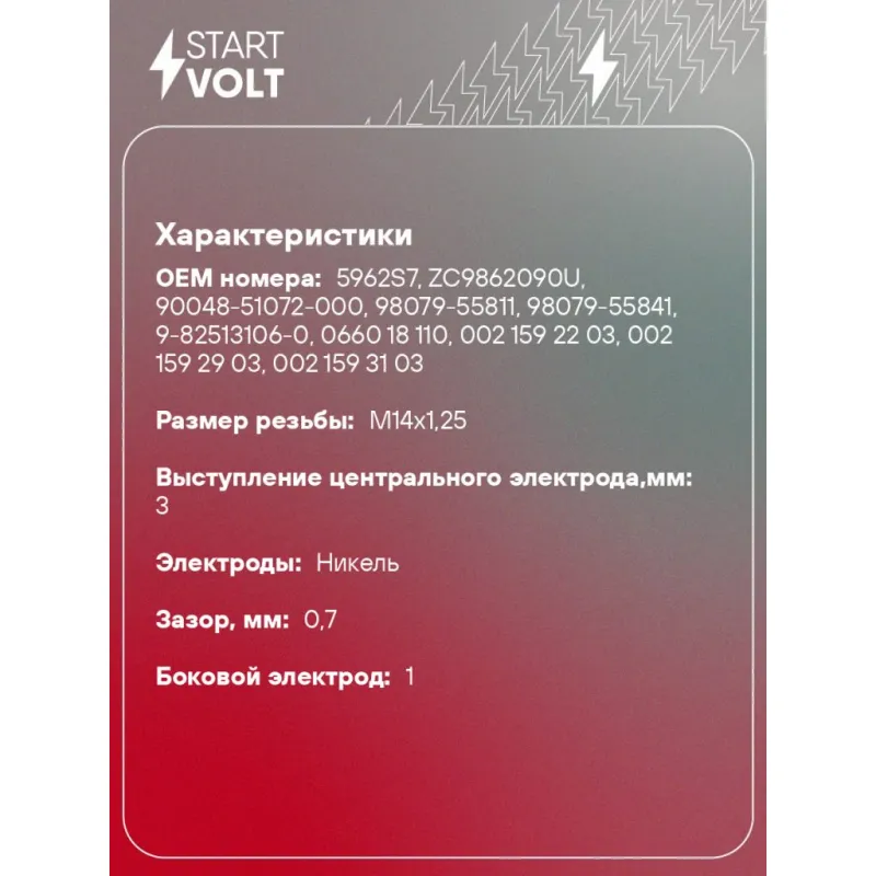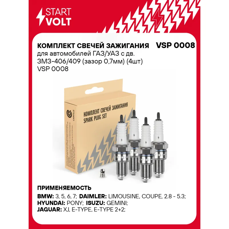 Комплект свечей зажигания для автомобилей ГАЗ/УАЗ с дв. ЗМЗ-406/409 (зазор 0,7мм) (4шт) Характеристики: Артикул: VSP 0008 OEM номера: 5962S7, ZC9862090U, 90048-51072-000, 98079-55811, 98079-55841, 9-82513106-0, 0660 18 110, 002 159 22 03, 002 159 29 03, 002 159 31 03, 002 159 48 03, A 002 159 22 03, A 002 159 29 03, A 002 159 31 03, A 002 159 48 03, MS 851 022, MS 851 182, 22401-W8985, 22401-W8985-PC, 22401-W8990, B2401-W8915, 77 00 743 920, 77 00 859 967, 77 00 862 054, 77 01 041 214, 77 01 366 539, 77 01 366 903, 420543200, 09482-00131, 04195-34140, 2364, BP5E, 94703-00133, 160690-78020 Резистор: Нет Момент затяжки, нм: 25-30 Количество на автомобиль: 1 Ширина ключа,мм: 20,6 Размер резьбы: M14x1,25 Длина резьбы,мм: 19 Выступление центрального электрода,мм: 3 Боковой электрод: 1 Электроды: Никель Зазор, мм: 0,7 Маркировка: NFP5-V7 Комплектация: Свеча зажигания - 4 шт Паспорт изделия/гарантийный талон Гарантия: от 1 года.