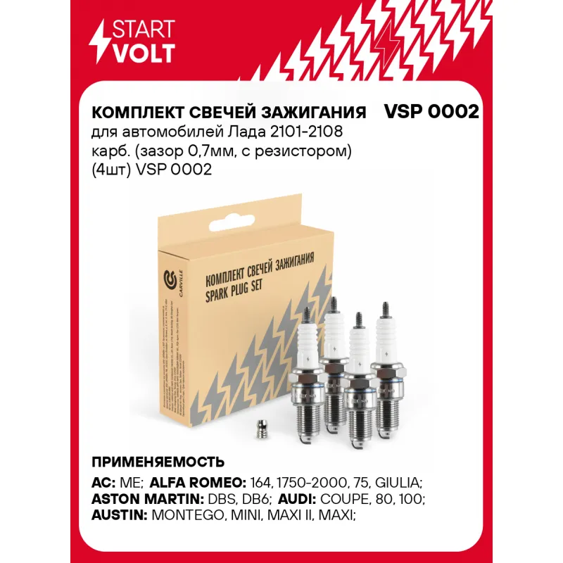 Комплект свечей зажигания для автомобилей Лада 2101-2108 карб. (зазор 0,7мм, с резистором) (4шт) Характеристики: Артикул: VSP 0002 OEM номера: 2101-3707000-02, 2101037070, 210137000, 21013707, 21013707001, 2108-3707010-10, 2108-3707010-12, 210837000, 2108370701, 21083707010, 2111-3707010-01, 2111370701, 21113707010, 2112-3707010-01, 2112370701, 4249164, 4345041, 46759688, 4401550, 1 265 595, 1 267 485, 1 338 145, 1 711 296, 12 12 1 265 595, 12 12 1 267 485, 12 12 1 338 145, 12 12 1 711 296, 12 12 9 061 871, 9 061 871, 2W9486, 94837756, 96110493, MS851555, 5960 07, 5960 J0, 5962 13, 5962 16, 5962 2A, 5962 3L, 5962 3R, 5962 4E, 5962 5Y, 5962 65, 5962 99, 5962 A8, 5962 E9, ZB9862093U, 3490274, 90048-51005, 90048-51034, 90048-51043, 90048-51059, 90048-51095, 90048-51096, 90048-51135, 98079-60000, 4401549, 4401551, 4401552, 46229251, 5894587, 5984036, 71711639, 71711640, 71711806, 71736278, 71736279, 7554432, 7554437, 7554444, 7571577, 7668669, 7760382, 7772456, 5 099 767, 92OF-12405-ZA, 25109002, 3496307, 5613100, 90239568, 90350018, 90355136, 90485247, 91143774, 98079-568-55, 98079-568-5500, 98079-568-5502, 98079-568-5504, 98079-56811, 98079-56841, 98079-56846, 98079-56851, 98079-56854, ZH98000-1000, 6553206604, 6563208605, 7510960, 8-94219943-0, 9-82513103-0, 92070-1028, 92070-1029, J4520W20EPRU, 7554442, 0304 18 110, 0745 24 210, 1690 18 110, 304-18-110, 745-24-210, A 116 159 01 03, A 116 159 00 03, A 110 159 00 03, A 006 159 01 03, A 006 159 00 03, A 003 159 57 03, A 003 159 45 03, A 003 159 26 03, A 003 159 13 03, A 003 159 12 03, A 002 159 42 03, A 002 159 41 03, A 002 159 28 03, A 002 159 24 03, A 000 159 00 03, 6 159 01 03, 6 159 00 03, 3 159 57 03, 3 159 45 03, 3 159 26 03, 3 159 13 03, 3 159 12 03, 2 159 42 03, 2 159 41 03, 2 159 28 03, 2 159 24 03, 116 159 01 03, 116 159 00 03, 110 159 00 03, 006 159 01 03, 006 159 00 03, 003 159 57 03, 003 159 45 03, 003 159 26 03, 003 159 13 03, 003 159 12 03, 002 159 42 03, 002 159 41 03, 002 159 28 03, 002 159 24 03, 000 159 00 03, 0 159 00 03, M05269897, MS851126, MS851183, MS851233, MS851236, MS851403, MS851413, 22401-21B16, 22401-75507, 22401-A4705, 22401-S2100, 22401-V0516, 22401-V1416, 22401-V1491, 22401-W8916, 22401-W8917, 12 14 007, 12 14 139, 12 14 802, 12 14 807, 43 00 010, 43 17 021, 92809460203, 99917011990, 99917012690, 99917013890, 99917013990, 99917014690, 99917014890, 99917016890, N178118, N178128, N1781399, LBP6ES, MS851233E, 7700500000, 7700733422, 7700737457, 7701023080, 7701366086, 7701366138, 7701366267, GSP161, GSP163, GSP181, GSP264, GSP4452, GSP7669, NLP100260, SE127919000A, SE127919000B, SE127919000C, 09482-00299, 22401-AA020, 22401-AA200, 22401-AA220, 22401-KA130, 09482-00118, 09482-00160, 09482-00409, 09482-00487, 09482-A00155, 90919-01057, 13066048, 1306605, 1346541, 13465414, 1367528, 1367529, 1367529.3, 1667529, 270746-1, 271409-5, 2735975, 101000000AB, 101000002AB, 101000002AC, 101000006AB, 101000006AC, 101000034AA, N01781139, N01781155, N01781175, N01781213, N01781236, N01781240, N01781253, N01781333, 9079E-ND071, 947-00002-28, 947-01002-28, 947-03002-28, 94701-00116, 94701-00234, 9470200234, 94703-00116, 94703-00234, А17ДВРМ 1.0, 2268, BPR6E, W20EPR-U, V-Line 2 Резистор: Есть Момент затяжки, нм: 25-30 Количество на автомобиль: 1 Ширина ключа,мм: 20,6 Размер резьбы: M14x1,25 Длина резьбы,мм: 19 Выступление центрального электрода,мм: 3 Боковой электрод: 1 Электроды: Никель Зазор, мм: 0,7 Маркировка: NFP6R-V7 Комплектация: Паспорт изделия/гарантийный талон Свеча зажигания - 4 шт Гарантия: от 1 года.