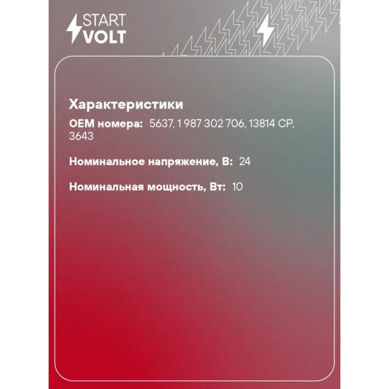 Лампа накаливания 24V 10W BA15S Характеристики: Артикул: VL-BA15S-13 OEM номера: 5637, 1 987 302 706, 13814 CP, 3643 Количество на автомобиль: 2 Номинальное напряжение, В: 24 Тип лампы: R10W Номинальная мощность, Вт: 10 Исполнение патрона: BA15s Комплектация: Лампа Гарантия: от 1 года.