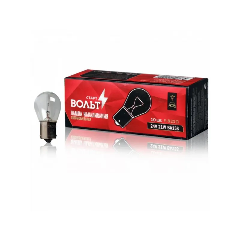 Лампа накаливания 24V 21W BA15S Характеристики: Артикул: VL-BA15S-03 OEM номера: 7511, 1 987 302 501, 13498 CP, 1 987 302 701 Количество на автомобиль: 2 Номинальное напряжение, В: 24 Тип лампы: P21W Номинальная мощность, Вт: 21 Исполнение патрона: BA15s Комплектация: Лампа Гарантия: от 1 года.