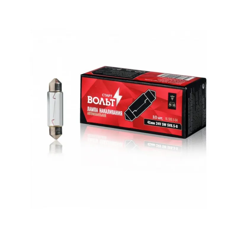 Лампа накаливания 24V 5W SV8.5-8 41мм Характеристики: Артикул: VL-SV8.5-04 OEM номера: 6424, 13844 CP, 1 987 302 520 Количество на автомобиль: 2 Номинальное напряжение, В: 24 Тип лампы: Цокольная лампа Номинальная мощность, Вт: 5 Исполнение патрона: SV8,5-8 Комплектация: Лампа Гарантия: от 1 года.... Читать полностью →