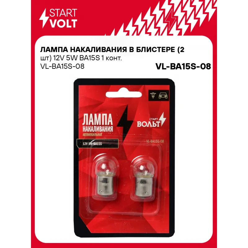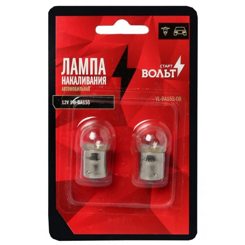 Лампа накаливания в блистере (2 шт) 12V 5W BA15S 1 конт. Характеристики: Артикул: VL-BA15S-08 OEM номера: 12821 Количество на автомобиль: 2 Номинальное напряжение, В: 12 Комплектация: Лампа Гарантия: от 1 года.