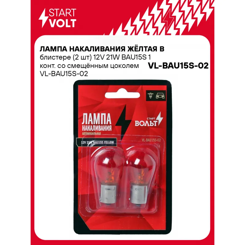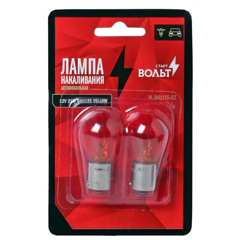 Лампа накаливания жёлтая в блистере (2 шт) 12V 21W BAU15S 1 конт. со смещённым цоколем Характеристики: Артикул: VL-BAU15S-02 OEM номера: 12496 Количество на автомобиль: 2 Номинальное напряжение, В: 12 Комплектация: Лампа Гарантия: от 1 года.