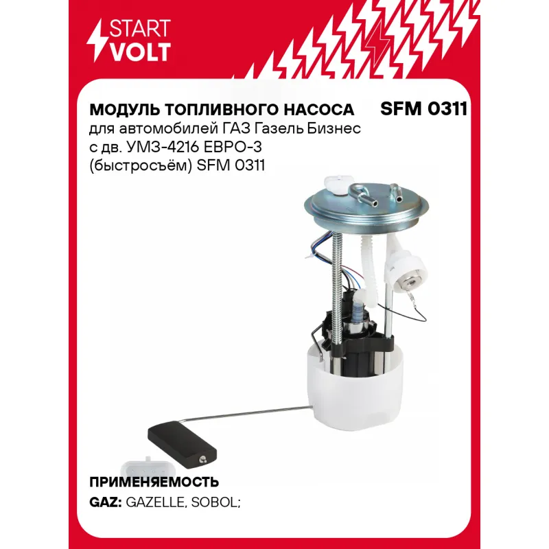 Модуль топливного насоса для автомобилей ГАЗ Газель Бизнес с дв. УМЗ-4216 ЕВРО-3 (быстросъём) Характеристики: Артикул: SFM 0311 OEM номера: 515.1139-12, 515.1139000-12 Производительность, л/ч: 80 Сила тока, А: 7 Номинальное давление, бар: 4 РДТ, бар: 4,4 Количество на автомобиль: 1 Комплектация: Паспорт изделия/гарантийный та... Читать полностью →
