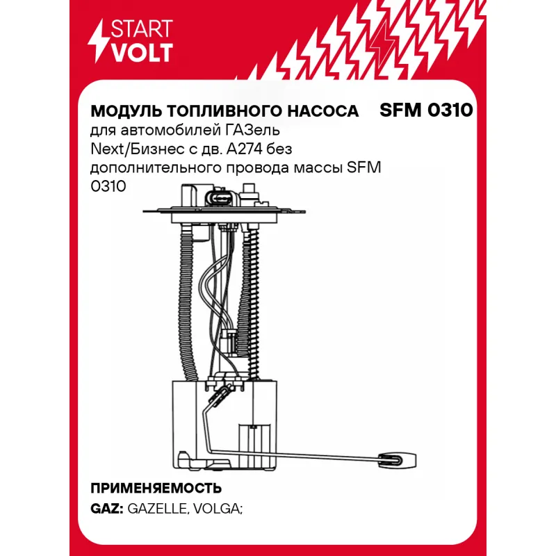 Модуль топливного насоса для автомобилей ГАЗель Next/Бизнес с дв. A274 без дополнительного провода массы Характеристики: Артикул: SFM 0310 OEM номера: 515.1139, 0515-00-0001139-000 Производительность, л/ч: 110 Номинальное давление, бар: 3 Количество на автомобиль: 1 Комплектация: Паспорт изделия/гарантийный талон - 1 шт Модуль топливного насоса - 1 шт Гарантия: от 1 года.