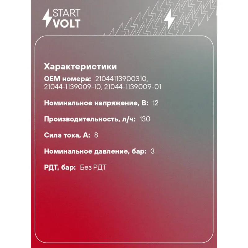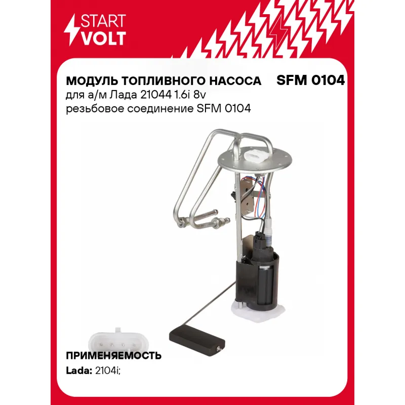 Модуль топливного насоса для а/м Лада 21044 1.6i 8v резьбовое соединение Характеристики: Артикул: SFM 0104 OEM номера: 21044113900310, 21044-1139009-10, 21044-1139009-01 Номинальное напряжение, В: 12 Производительность, л/ч: 130 Сила тока, А: 8 Номинальное давление, бар: 3 Сопутствующий товар: Моторы бензонасоса (топливные насосы электрические): SFP 0501 РДТ, бар: без РДТ Количество на автомобиль: 1 Подходит для авто: ВАЗ 2104i Для проверки применяемости отправьте VIN автомобиля через вкладку "Есть вопросы о товаре?" Комплектация: Паспорт изделия/гарантийный талон - 1 шт Модуль топливного насоса - 1 шт Гарантия: от 1 года.