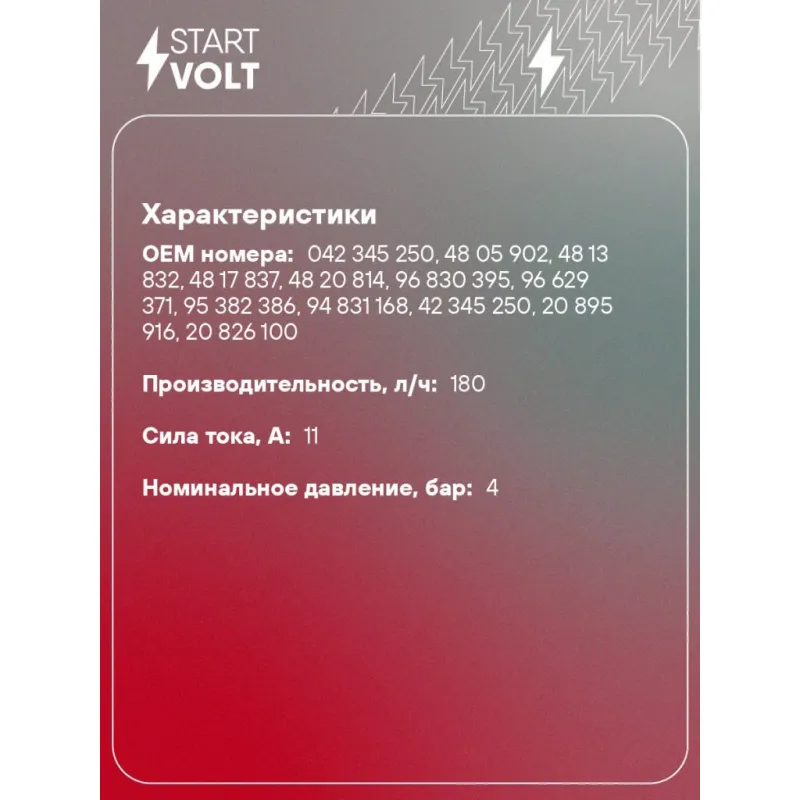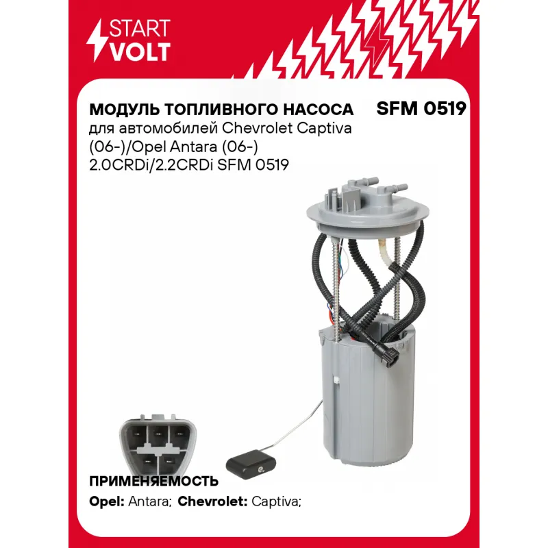 Модуль топливного насоса для автомобилей Chevrolet Captiva (06-)/Opel Antara (06-) 2.0CRDi/2.2CRDi Характеристики: Артикул: SFM 0519 OEM номера: 042 345 250, 48 05 902, 48 13 832, 48 17 837, 48 20 814, 96 830 395, 96 629 371, 95 382 386, 94 831 168, 42 345 250, 20 895 916, 20 826 100 Производительность, л/ч: 180 Сила тока, А: 11 Номинальное давление, бар: 4 Количество на автомобиль: 1 Подходит для авто: Opel Antara (06-), Antara (06-) Chevrolet Captiva (06-), Captiva (06-) Для проверки применяемости отправьте VIN автомобиля через вкладку "Есть вопросы о товаре?" Комплектация: Паспорт изделия/гарантийный талон - 1 шт Модуль топливного насоса - 1 шт Гарантия: от 1 года.