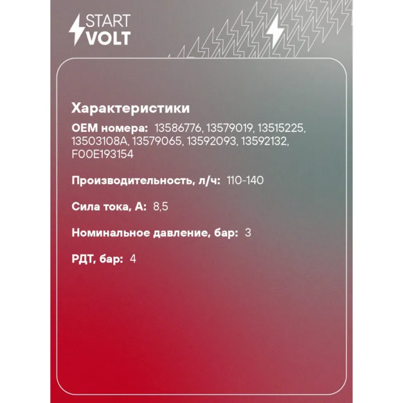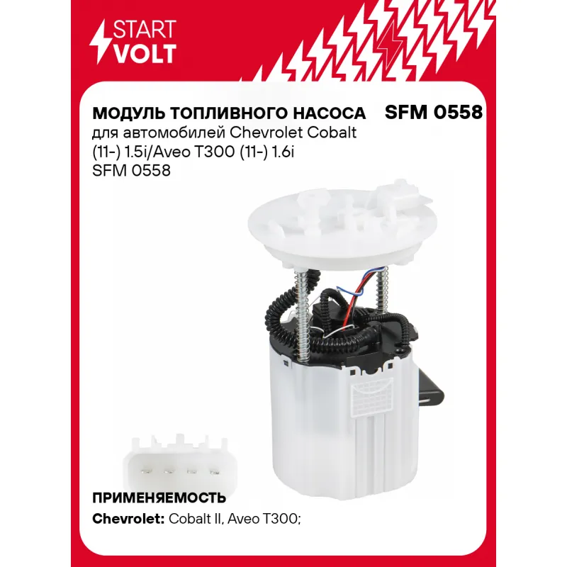 Модуль топливного насоса для автомобилей Chevrolet Cobalt (11-) 1.5i/Aveo T300 (11-) 1.6i Характеристики: Артикул: SFM 0558 OEM номера: 13586776, 13579019, 13515225, 13503108A, 13579065, 13592093, 13592132, F00E193154 Производительность, л/ч: 110-140 Сила тока, А: 8,5 Номинальное давление, бар: 3 Сопутствующий товар: Моторы бензонасоса (топливные насосы электрические): 4 РДТ, бар: 4 Количество на автомобиль: 1 Подходит для авто: Chevrolet Cobalt II (11-), Aveo T300 (11-) Для проверки применяемости отправьте VIN автомобиля через вкладку "Есть вопросы о товаре?" Комплектация: Модуль топливного насоса - 1 шт Паспорт изделия/гарантийный талон - 1 шт Гарантия: от 1 года.