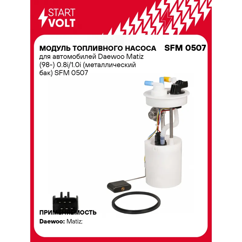 Модуль топливного насоса для автомобилей Daewoo Matiz (98-) 0.8i/1.0i (металлический бак) Характеристики: Артикул: SFM 0507 OEM номера: 96332986, 96876362, 96298305, 42352913, 133375, 96570070 Номинальное напряжение, В: 12 Производительность, л/ч: 90 Сила тока, А: 6,5 Номинальное давление, бар: 3 РДТ, бар: 3,6 Количество на авто... Читать полностью →