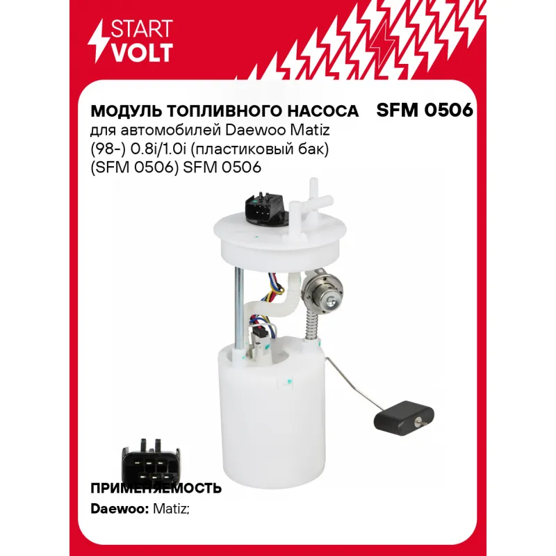Модуль топливного насоса для автомобилей Daewoo Matiz (98-) 0.8i/1.0i (пластиковый бак) (SFM 0506) Характеристики: Артикул: SFM 0506 OEM номера: 96341749, 133317, 96320232, 96518040, 96563403, M100AF161 Номинальное напряжение, В: 12 Производительность, л/ч: 90 Сила тока, А: 6 Номинальное давление, бар: 3 РДТ, бар: 3,3-3,8 Количе... Читать полностью →