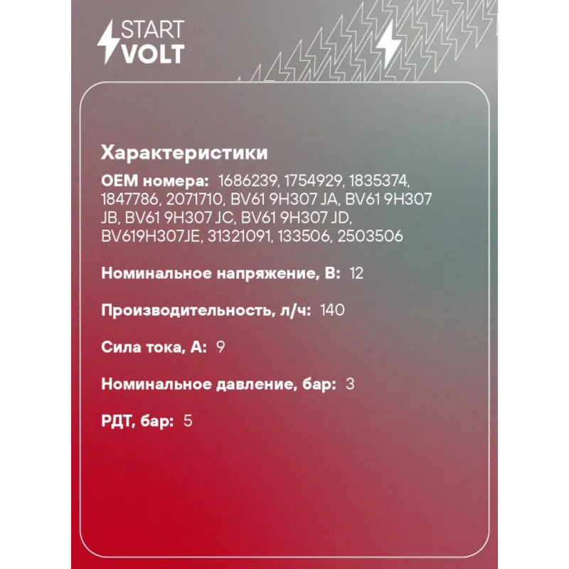 Модуль топливного насоса для автомобилей Ford Focus III (10-) 1.5T/2.0i Характеристики: Артикул: SFM 1003 OEM номера: 1686239, 1754929, 1835374, 1847786, 2071710, BV61 9H307 JA, BV61 9H307 JB, BV61 9H307 JC, BV61 9H307 JD, BV619H307JE, 31321091, 133506, 2503506 Номинальное напряжение, В: 12 Производительность, л/ч: 140 Сила тока, А: 9 Номинальное давление, бар: 3 РДТ, бар: 5 Количество на автомобиль: 1 Сопротивление, Ом: 50-466 Подходит для авто: Ford Focus III (11-), Focus III (11-) Для проверки применяемости отправьте VIN автомобиля через вкладку "Есть вопросы о товаре?" Комплектация: Паспорт изделия/гарантийный талон - 1 шт Модуль топливного насоса - 1 шт Штанга датчика уровня топлива - 1 шт Гарантия: от 1 года.